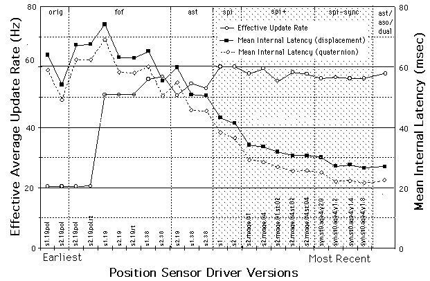 Current virtual environment systems commonly use electromagnetic position trackers to sense operator head and hand positions to generate virtual environment simulations. The most common of these sensors suffer from uncorrected distortion in measurements of operator position and when interfaced to simulation computers produce objectionable time lags. Though these defects acknowledged problems, their impact on the objective and subjective aspects of operator behavior within immersing virtual environments has not been studied and they have not been minimized.