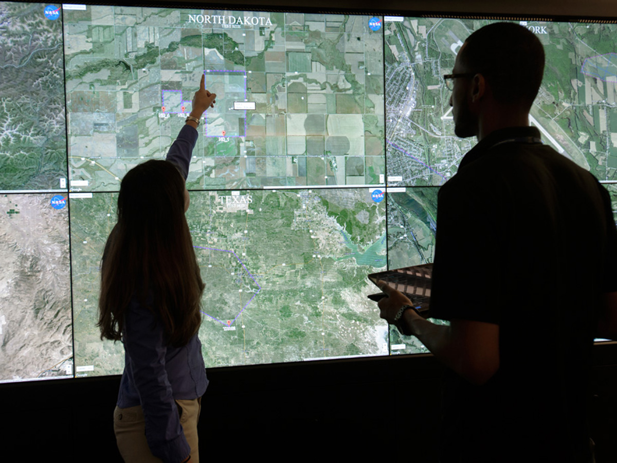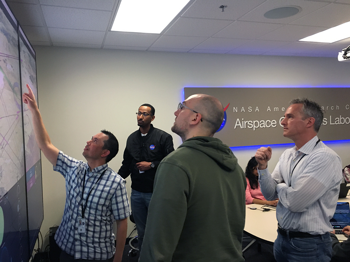 Click to see an image of NASA Administrator Bill Nelson, NASA Deputy Administrator Pam Melroy and Congresswoman Anna Eshoo visiting the Airspace Operations Laboratory Click to see an image of NASA Administrator Bill Nelson, NASA Deputy Administrator Pam Melroy and Congresswoman Anna Eshoo getting research demo at the Airspace Operations Laboratory Click to see an image of NASA Administrator Bill Nelson, NASA Deputy Administrator Pam Melroy and Congresswoman Anna Eshoo learning about the Unmanned Aircraft Systems Traffic Management System (UTM) at the Airspace Operations Laboratory Click to see an image of NASA Administrator Bill Nelson, NASA Deputy Administrator Pam Melroy and Congresswoman Anna Eshoo along with NASA personnel at the Airspace Operations Laboratory