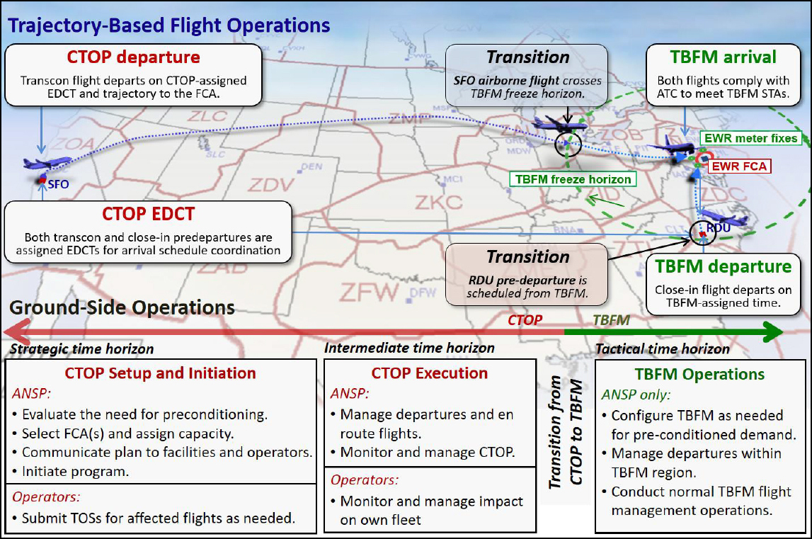 Click to see an image of Integrated Demand Management (IDM) tools Click to see an image of the Integrated Demand Management (IDM) team during a simulation Click to see an image of a Trajectory Based Flight Operations (TBFO) concept overview
